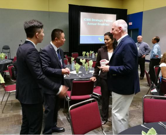 史高琦一行在ICMA戰(zhàn)略合作會(huì)員早餐圓桌會(huì)議期間,與ICMA執(zhí)行董事Robert J. O’Neill 和首席運(yùn)營(yíng)官Uma Ramesh就進(jìn)一步深化合作交換意見,并與其他會(huì)員單位進(jìn)行了交流。還與ICMA項(xiàng)目部主任David Grossman就合作方向進(jìn)行了深入座談交流,雙方對(duì)在棕地治理、建設(shè)用地綜合開發(fā)、流域生態(tài)化綜合治理等方面開展合作達(dá)成共識(shí)。