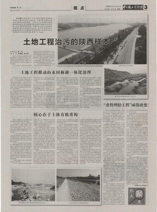 2016年9月,陜西省委書記婁勤儉在聽取關(guān)中水系規(guī)劃建設(shè)和黃河西岸土地生態(tài)恢復(fù)治理工程匯報時強調(diào),要推進山水林田湖一體化治理,堅持防汛與分流相結(jié)合、疏浚與聯(lián)通相結(jié)合、治污與濕地建設(shè)相結(jié)合,充分利用現(xiàn)代化的土地工程技術(shù),加強科技創(chuàng)新,穩(wěn)步推進土地綜合整治。