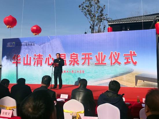 11月23日,華山清心溫泉開業(yè)慶典隆重舉行。陜西省土地工程建設(shè)集團(tuán)執(zhí)行董事、總經(jīng)理韓霽昌,華陰市委書記、華山景區(qū)黨工委書記李軍政等相關(guān)領(lǐng)導(dǎo),陜西省美術(shù)協(xié)會副主席、省國畫院院長范樺等14位知名書畫藝術(shù)家出席儀式。
