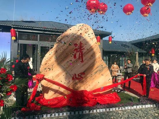 陜西省土地工程建設(shè)集團(tuán)執(zhí)行董事、總經(jīng)理韓霽昌和華陰市委書記、華山景區(qū)黨工委書記李軍政共同為清心石碑揭幕,鼓樂齊鳴,祥獅歡舞,彩煙起,禮炮響,將開業(yè)慶典推向高潮。