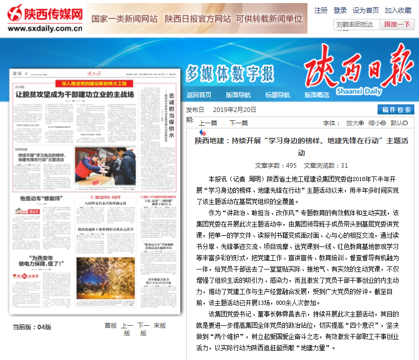 【陜西日報】陜西地建:持續(xù)開展“學(xué)習(xí)身邊的榜樣、地建先鋒在行動”主題活動
