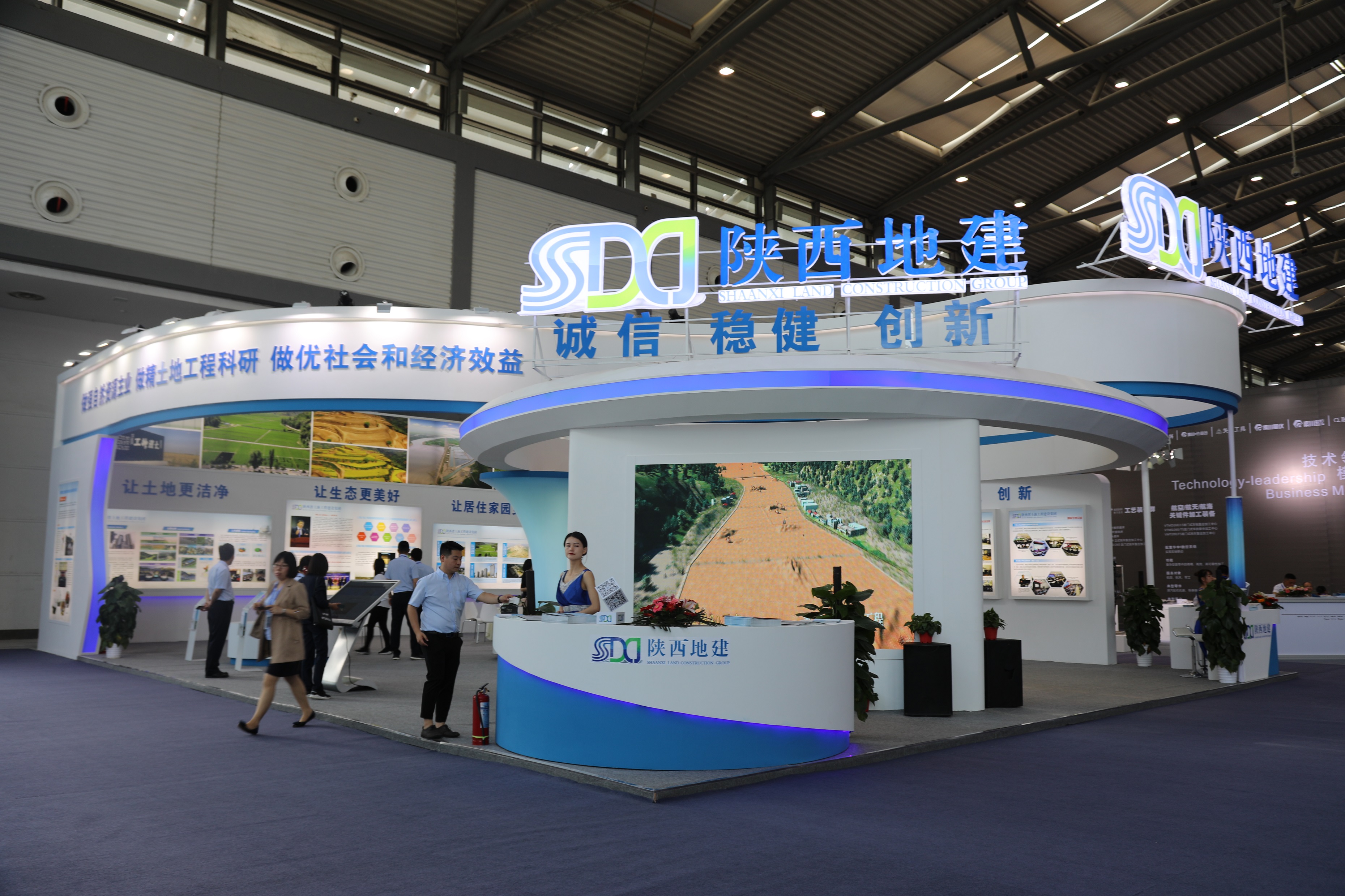 展會現(xiàn)場,集團公司200平米的展區(qū)集中展示了包括土地工程研究的九大科研平臺、土地全域整治、污損土地治理、山水林田湖草綜合治理、城市綜合體開發(fā)、旅游綜合體開發(fā)、勘測技術(shù)服務(wù)等內(nèi)容,展位區(qū)除了傳統(tǒng)的文字、圖片展板、視頻、實物樣品外,還展示了土體有機重構(gòu)理論的科學(xué)模型,并精心準備了宣傳圖冊,向到展位參觀的嘉賓和客商發(fā)放,傳遞了“讓土地更潔凈、讓生態(tài)更美好、讓家園更安全”的綠色生態(tài)發(fā)展理念,得到了參會人員的廣泛關(guān)注和各級領(lǐng)導(dǎo)的充分肯定,進一步提升了集團的社會知名度,為進一步擴大對外合作創(chuàng)造了有利條件。
