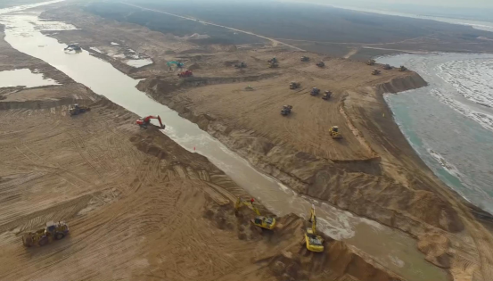 2015年11月17日,導(dǎo)流槽工程開始施工,由于時(shí)間緊,難度大,任務(wù)重,陜西地建土地綜合開發(fā)公司總經(jīng)理王軍尚赴項(xiàng)目一線指揮,從其他項(xiàng)目部抽調(diào)人員充實(shí)管理隊(duì)伍,全體人員眾志成城,同心協(xié)力,短短兩三天就組織挖掘機(jī)、裝載機(jī)、推土機(jī)等近110臺(tái)機(jī)械,克服隆冬時(shí)節(jié)黃河灘荒無人煙、天寒地凍、交通不便等惡劣的自然條件,無路修路,遇水架橋,在施工現(xiàn)場附近支起帳篷,就地安營扎寨。100多人吃在工地,住在工地,風(fēng)餐露宿,不分晝夜,加班加點(diǎn),定任務(wù)、促進(jìn)度、趕工期。經(jīng)過14天的艱苦鏖戰(zhàn),終于在2016年1月12日,實(shí)現(xiàn)了導(dǎo)流槽工程的勝利貫通,提前8天完成了工程建設(shè)任務(wù),大大的降低控導(dǎo)工程的施工難度。