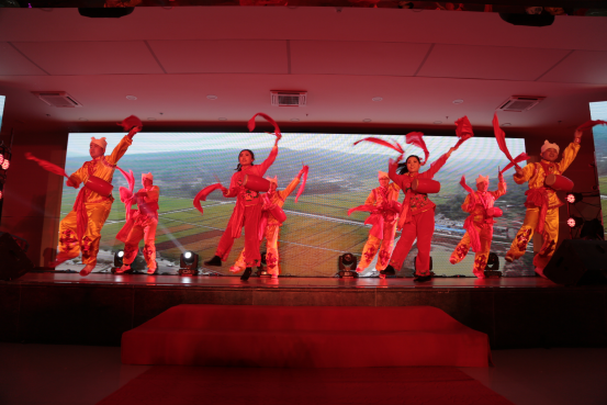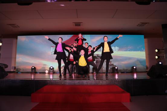隨著陣陣鼓點,歡騰喜慶的《安塞腰鼓》拉開了演出的序幕,熱情洋溢的《夸夸咱地建》,反映員工生活工作的《圓夢地建》和《大漠生花》笑中帶淚、感動全場,青春動感的《友情歲月歌曲串燒》和《wonder girls》,風趣幽默的小品《金牌夢想秀》以及恢弘大氣的大合唱,特別是集團領導參演的《大地飛歌》反響熱烈,贏得現(xiàn)場的一片叫好。穿插在聯(lián)歡會中的幸運抽獎更是把氣氛推向高潮,播放的韓城下峪口控導工程視頻展示了集團公司重點工程的最新面貌。這些精彩的節(jié)目在展現(xiàn)地建人多才多藝的文化素養(yǎng)同時,也凸顯了集團在過去一年取得的輝煌成就,更彰顯了地建人對集團發(fā)展的熱切期盼和真摯祝福。
