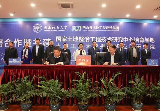 11月25日上午,陜西地建集團與陜西師范大學戰(zhàn)略合作暨共建國家土地整治工程技術(shù)研究中心培育基地、土地工程大數(shù)據(jù)分析應用研究院簽約儀式在集團公司隆重舉行。省人大常委會副主任朱靜芝、中國工程院院士孫九林、陜西日報社社長張仁華等領(lǐng)導出席并見證簽約,省國資委黨委副書記、紀委書記郁偉主持簽約。陜西師范大學校長程光旭和集團公司執(zhí)行董事、總經(jīng)理韓霽昌代表雙方簽約。
