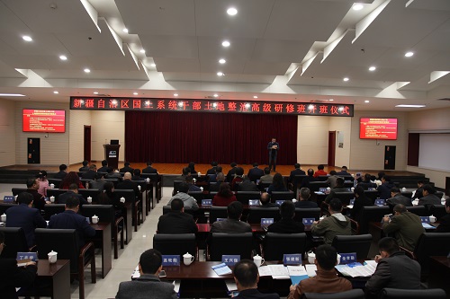 3月13日上午,在國家土地督察局西安局、新疆和陜西兩省國土資源廳支持下,由集團公司和長安大學(xué)土地工程學(xué)院聯(lián)合承辦的首屆新疆維吾爾自治區(qū)國土系統(tǒng)干部土地整治高級研修班開班儀式在集團公司舉行。集團執(zhí)行董事、總經(jīng)理、土地工程學(xué)院院長韓霽昌致歡迎辭,國家土地督察局西安局黨組成員、副專員孫弘,長安大學(xué)校長馬建,省國土資源廳黨組成員、副廳長盧勇,新疆自治區(qū)國土資源廳黨組成員、土地開發(fā)整理建設(shè)局黨委書記、局長續(xù)效麗出席開班儀式并講話,集團黨委書記、副總經(jīng)理史高琦等集團領(lǐng)導(dǎo)、長安大學(xué)相關(guān)領(lǐng)導(dǎo)、授課專家教授、來自自治區(qū)國土廳相關(guān)事業(yè)單位各州地市國土資源部門從事土地整治業(yè)務(wù)的相關(guān)技術(shù)人員共計50余人參加了開班儀式。開班儀式由長安大學(xué)土地工程學(xué)院黨委書記王劉華主持。