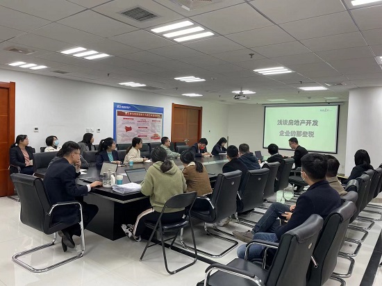 此次培訓(xùn)圍繞房地產(chǎn)企業(yè)在項目開發(fā)全周期過程中涉及的稅收問題開展,重點講解了房地產(chǎn)涉及的相關(guān)稅種的計算方法、納稅申報時間及步驟,并結(jié)合真實案例深入分析,解決實際工作中的難點疑點。通過培訓(xùn),相關(guān)人員對房地產(chǎn)行業(yè)涉稅流程有了清晰的認(rèn)知,對涉稅風(fēng)險有了全方位的了解,在今后工作中,將繼續(xù)提高公司涉稅意識及稅務(wù)籌劃能力,推動公司稅務(wù)管理水平再上新臺階。