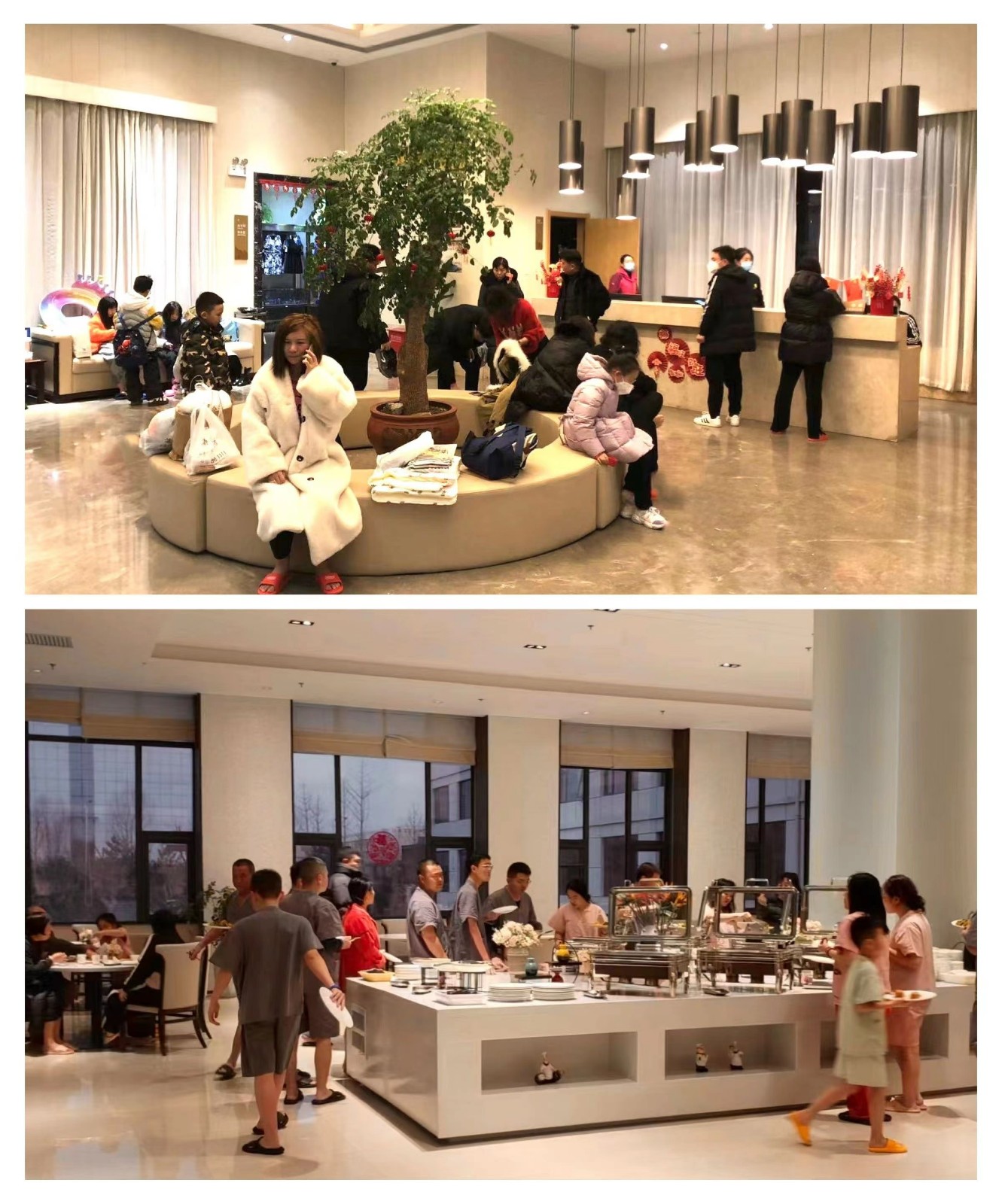 酒店突出“年”味兒,店內(nèi)外張燈結(jié)彩,喜氣洋洋,營(yíng)造了濃郁的佳節(jié)氛圍。餐廳盛情以待,呈現(xiàn)了豐盛美味的團(tuán)圓家宴,年夜飯融合多款吉祥珍饈美食,色味俱佳;包間為賓客贈(zèng)送伴手禮,免費(fèi)提供全家福拍攝服務(wù);客房張貼窗花和福字,讓賓客感受到了家一般的溫馨愜意。在歡聲笑語(yǔ)中,賓客紛紛為酒店的用心服務(wù)點(diǎn)贊。
