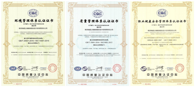地建勘測(cè)規(guī)劃院獲得QES三大管理體系認(rèn)證證書