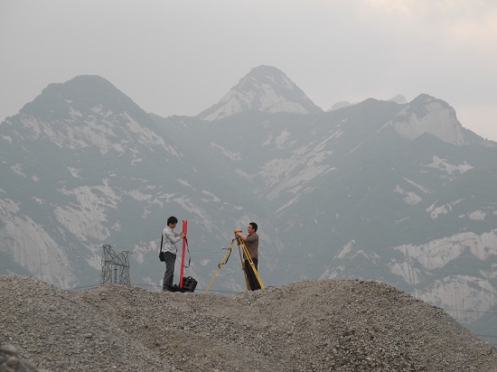 (黨光普和同事在華山腳下進(jìn)行測量作業(yè))