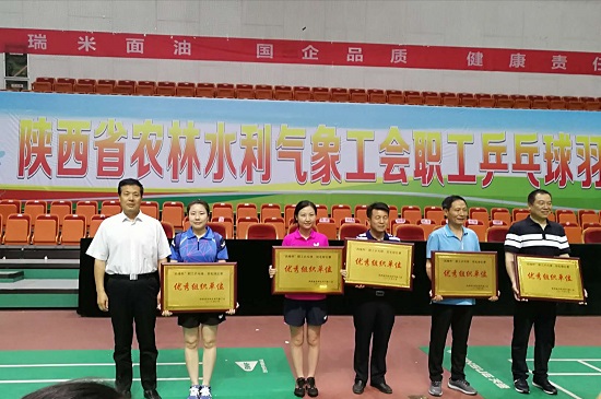 5月31日-6月1日,省農(nóng)林水利氣象工會(huì)“西瑞杯”職工乒乓球、羽毛球比賽在省網(wǎng)球中心隆重舉行。經(jīng)過激烈比拼,集團(tuán)公司榮獲優(yōu)秀組織獎(jiǎng),乒乓球代表隊(duì)榮獲團(tuán)體三等獎(jiǎng),省總工會(huì)副主席丁立虎為集團(tuán)代表隊(duì)頒獎(jiǎng),集團(tuán)工會(huì)主席李瑞出席開幕式。選手孫劍虹榮獲“健康之星”稱號(hào)。