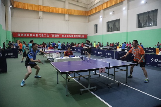 此次乒乓球比賽為團(tuán)體小組賽,每組分為男子雙打(45歲組)、女子雙打、男子單打、第二男子雙打、男女混雙打五個(gè)項(xiàng)目,小組采取“五局三勝制,十一分”循環(huán)賽。來自省農(nóng)林水利氣象系統(tǒng)25支代表隊(duì),近700名運(yùn)動(dòng)員、教練員和工作人員參加。