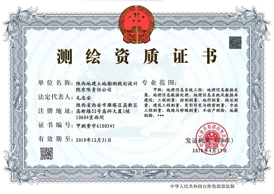 日前,經(jīng)自然資源部受理批準(zhǔn),地建勘測(cè)規(guī)劃院取得甲級(jí)測(cè)繪資質(zhì)。