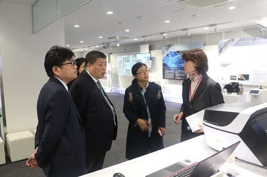 在島津制作所,韓霽昌一行與島津高層及技術(shù)人員就土壤原位檢測領(lǐng)域技術(shù)進行交流座談,學(xué)習(xí)其先進的土壤檢測技術(shù)和理念,洽談共同研究相關(guān)合作事宜。他實地調(diào)研了島津總部,全面了解其經(jīng)營理念、技術(shù)支持、研發(fā)成果及營銷模式;觀摩了分析測試儀器制造車間以及儀器展示廳,深入了解土壤檢測儀器的研發(fā)生產(chǎn)及操作。通過座談交流和實地考察,雙方在土壤原位檢測技術(shù)合作研究、污損土壤修復(fù)治理項目合作、土壤檢測設(shè)備引進及本土化研發(fā)事宜達成了初步共識。