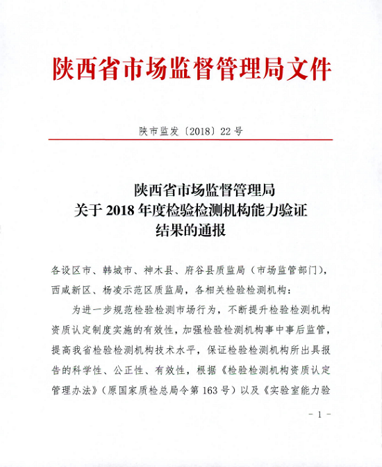 11月30日,陜西省市場(chǎng)監(jiān)督管理局發(fā)布了《陜西省市場(chǎng)監(jiān)督管理局關(guān)于2018 年度檢驗(yàn)檢測(cè)機(jī)構(gòu)能力驗(yàn)證結(jié)果的通報(bào)》(陜市監(jiān)發(fā)〔2018)22號(hào)),陜西地建土地工程質(zhì)量檢測(cè)有限責(zé)任公司順利通過環(huán)境類重金屬“鉛”“鎘”檢測(cè)能力驗(yàn)證,驗(yàn)證結(jié)果為“滿意”。