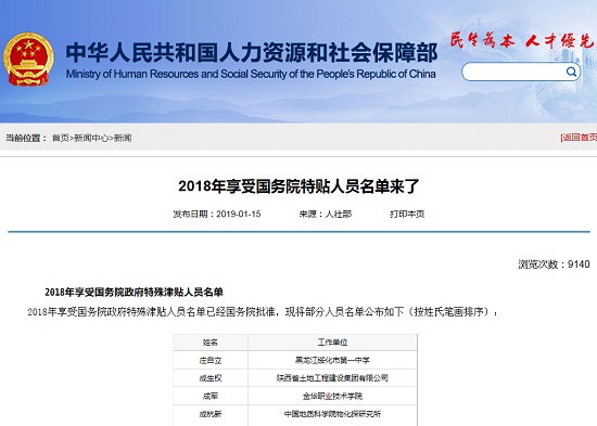 日前,人社部公布了2018年享受國務(wù)院政府特殊津貼人員名單,集團公司紀(jì)委書記成生權(quán)榮列其中。