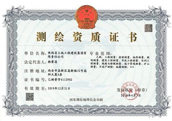 近日,經(jīng)陜西省測繪地理信息局審核批準,集團公司順利晉升測繪乙級資質(zhì),標志著集團公司的測繪業(yè)務(wù)水平、業(yè)務(wù)范圍、綜合競爭力和社會知名度得到進一步提升和增強。