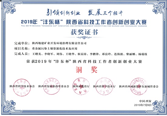 近日,由陜西省科學(xué)技術(shù)協(xié)會、陜西省教育廳、陜西省科學(xué)技術(shù)廳、陜西省西咸新區(qū)灃東新城管理委員會主辦的2019年“灃東杯”陜西省科技工作者創(chuàng)新創(chuàng)業(yè)大賽決賽及頒獎儀式在西咸新區(qū)灃東新城舉辦,地建礦業(yè)公司榮獲大賽銅獎。