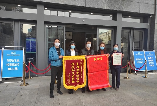 地建物業(yè)公司抗疫勇?lián)?dāng) 桃園社區(qū)感謝送錦旗