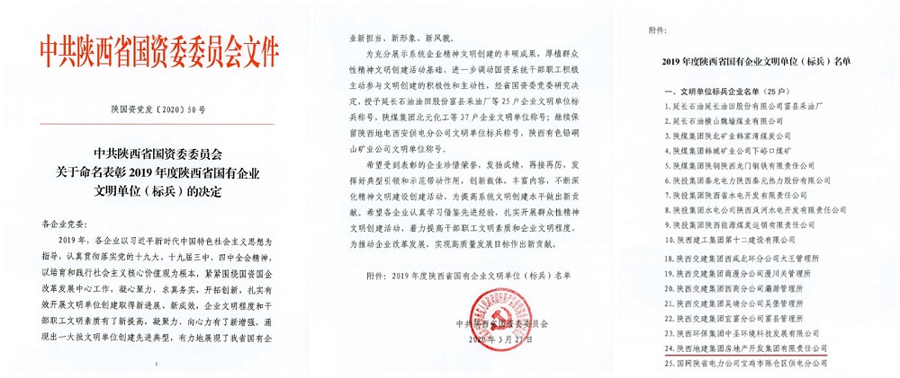 地建房地產集團公司喜獲2019年度陜西省國有企業(yè)文明單位標兵稱號