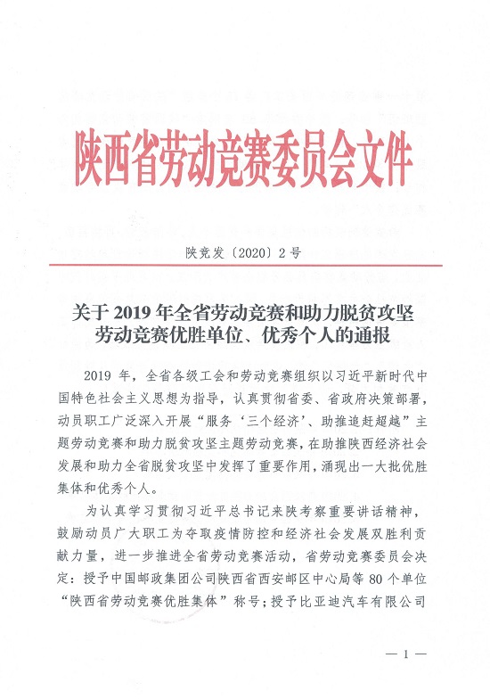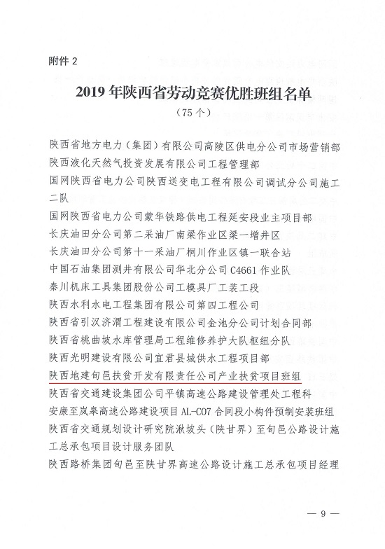 近日,陜西地建永壽扶貧開發(fā)有限公司、陜西地建旬邑扶貧開發(fā)有限責(zé)任公司分別被省勞動(dòng)競(jìng)賽委員會(huì)評(píng)為2019年省勞動(dòng)競(jìng)賽優(yōu)勝集體、優(yōu)勝班組,商洛分公司雷光宇同志被授予省勞動(dòng)競(jìng)賽“優(yōu)秀個(gè)人”稱號(hào)。