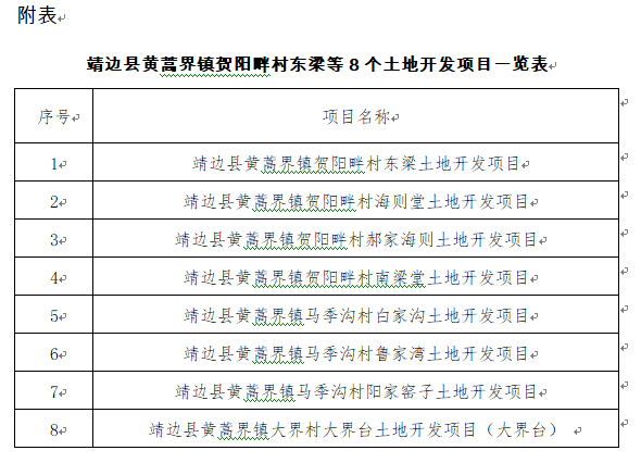 一、工程名稱:靖邊縣黃蒿界鎮(zhèn)賀陽畔村東梁等8個土地開發(fā)項目(8個標段)
