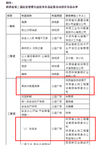 集團兩部公益廣告榮獲陜西省第三屆應(yīng)急管理公益宣傳作品三等獎