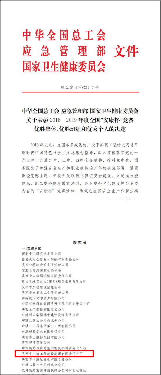 集團公司榮獲全國“安康杯”競賽優(yōu)勝單位稱號