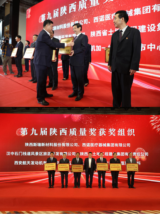 為進(jìn)一步推動(dòng)質(zhì)量強(qiáng)省建設(shè),全面展示我省企業(yè)品牌建設(shè)成果,充分發(fā)揮陜西質(zhì)量獎(jiǎng)獲獎(jiǎng)組織的標(biāo)桿示范作用,5月10日, 由省市場監(jiān)管局聯(lián)合省發(fā)展改革委、省工業(yè)和信息化廳、省農(nóng)業(yè)農(nóng)村廳、省商務(wù)廳等部門舉辦的“中國品牌日”主題宣傳活動(dòng)暨第九屆陜西質(zhì)量獎(jiǎng)?lì)C獎(jiǎng)儀式在陜西賓館陜西大會(huì)堂舉行,陜西省副省長魏建鋒出席活動(dòng)并為獲獎(jiǎng)企業(yè)頒獎(jiǎng),集團(tuán)黨委副書記、總經(jīng)理唐宏軍代表集團(tuán)上臺(tái)領(lǐng)獎(jiǎng)。
