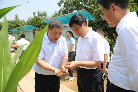 張伯軍一行考察了富平中試基地的試驗(yàn)小區(qū)、科研溫室、室內(nèi)檢測(cè)等工作開(kāi)展情況,韓霽昌圍繞黃土高原不同退化類型土地上旱作農(nóng)業(yè)的發(fā)展,就集團(tuán)多年來(lái)在相關(guān)方面的科技研發(fā)、技術(shù)攻關(guān)、成果轉(zhuǎn)化、產(chǎn)學(xué)研合作進(jìn)行了全面介紹,重點(diǎn)介紹了在耕地保護(hù)與質(zhì)量提升、高標(biāo)準(zhǔn)農(nóng)田建設(shè)等方面的工作。張伯軍對(duì)集團(tuán)在黃土高原旱作農(nóng)業(yè)等方面取得的成績(jī)給予充分肯定,并對(duì)重點(diǎn)實(shí)驗(yàn)室未來(lái)發(fā)展規(guī)劃給予指導(dǎo)和勉勵(lì)。