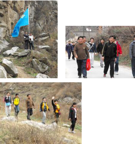 四月,總公司組織全體員工進行登山活動。乘車來到抱龍峪山口,沿著一條僻靜的山路向上攀登,途中恰遇航天研究所做實驗,韓霽昌總經(jīng)理即興為大家做了講解,讓大家增長了航天方面的知識,真是這次登山活動的意外收獲。